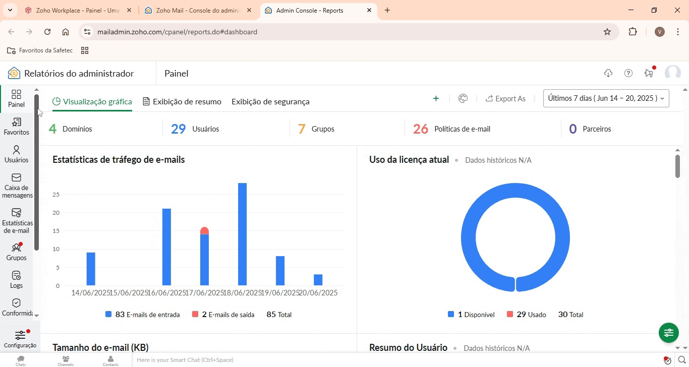 Na nova aba de relatórios, novamente no menu lateral esquerdo, clique na opção “Logs”. É aqui que você poderá consultar os registros de envio de e-mails.